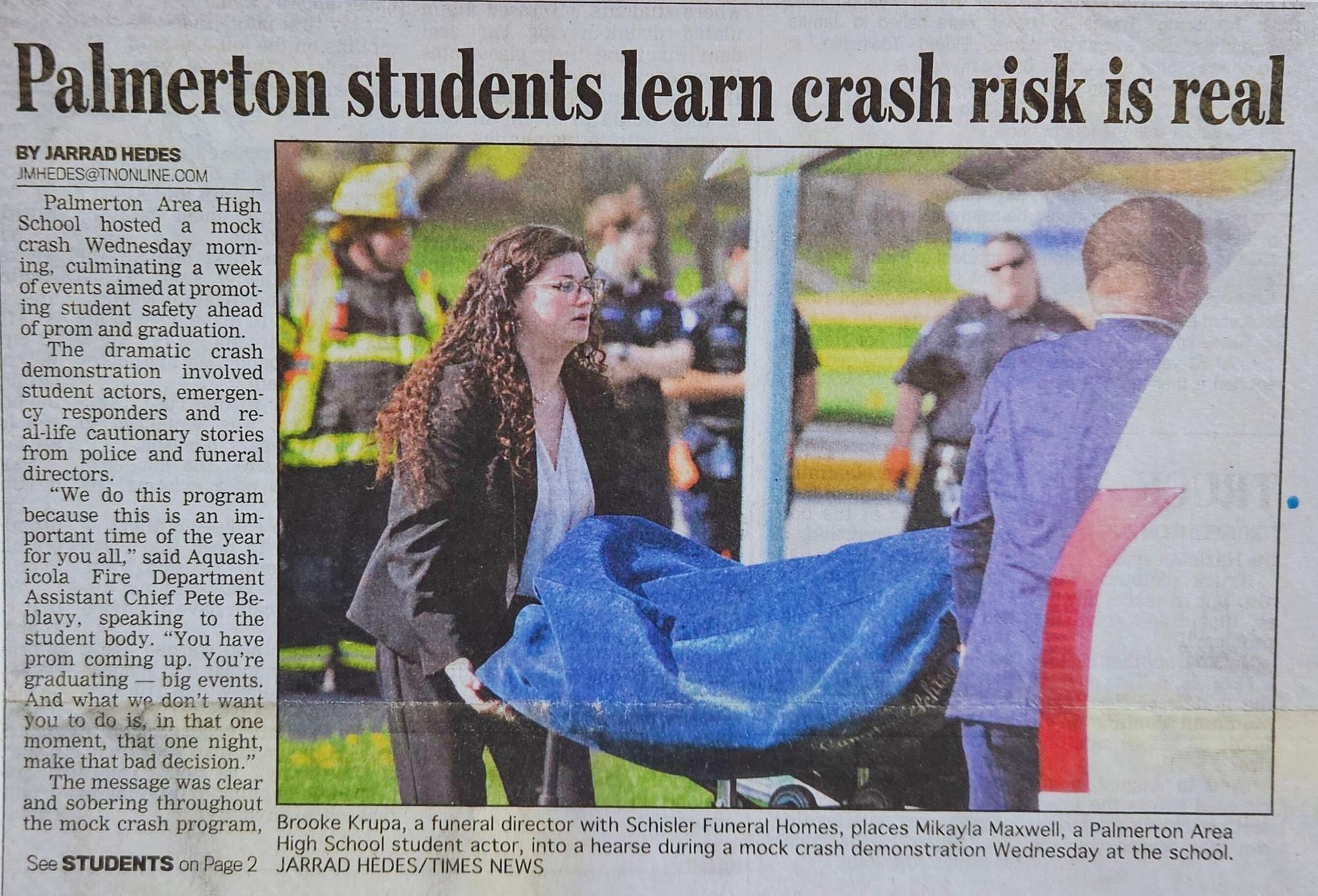 Schisler Funeral Home partnered with Palmerton High School to participate in a powerful prom night safety demonstration, highlighting the devastating impact of drunk driving. Through a realistic mock crash scenario, students saw firsthand how one decision can change lives forever.